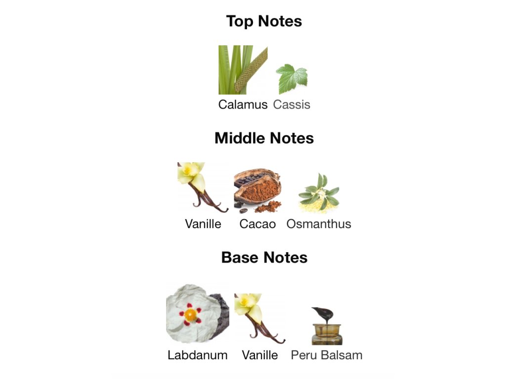- Základ: Vanilka z Madagaskaru, peruánsky balzam, cistus labdanum