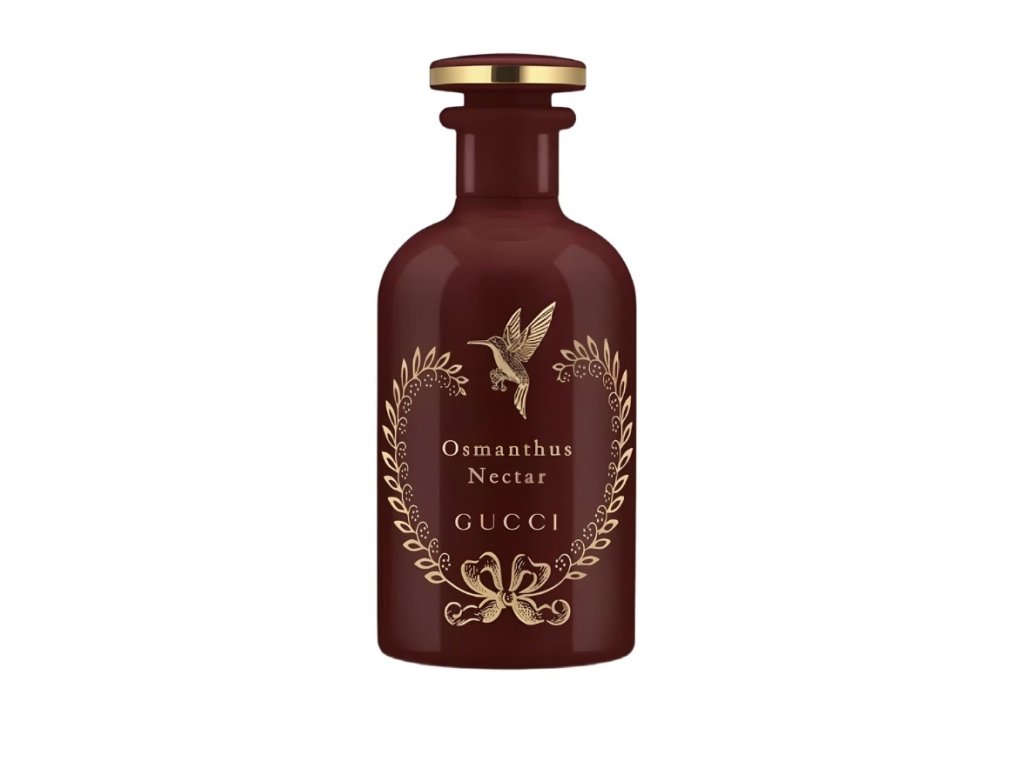 Osmanthus Nectar od Gucci z kolekcie The Alchemist's Garden zachytáva marhuľové aspekty kvetu osmanthusu pomocou inovatívnej technológie headspace. Majstrovská parfumérka Nathalie Lorson odhaľuje esenciu kvetu so santalovým uzemnením a vytvára drevito-kvetinovú vôňu, ktorá spája chuť a vôňu.