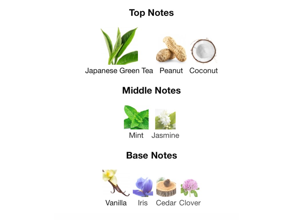 Srdce: Kokos, arašidy, jazmín, mäta, zimná zeleň, kosatec