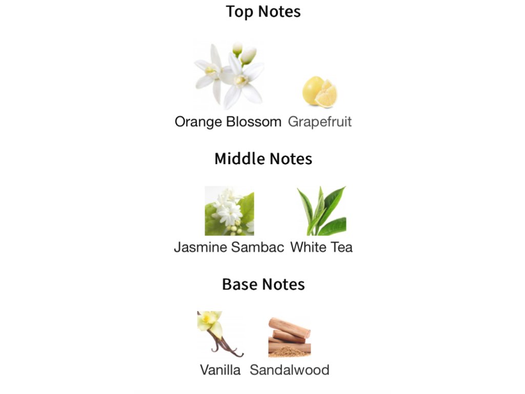 Printemps Blanc je ten jemný, neodolateľný pocit, ktorý uchváti už od prvej nôty. Ako žiarivé ráno, keď je vzduch naplnený svetlom a prísľubom budúceho dňa, otvára sa šťavnatým leskom grapefruitu a kvetinovou nežnosťou pomarančového kvetu – osviežujúce duo, ktoré hypnotizuje od prvého privoňania. Potom jazmín sambac odhaľuje svoju hypnotickú stopu, pohladený vzdušnou eleganciou bieleho čaju, ľahkého ako jarný vánok.