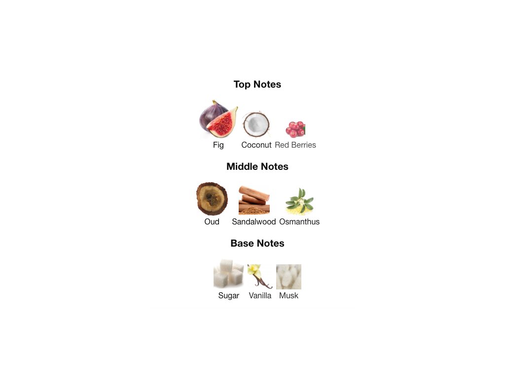 Jeho zjavné srdce z figy – obrátený kvet premenený na džem s vanilkou a osmanthusom – a jeho tmavý základ, zrodený z tajomných orientálnych drevín, premieňajú vôňu parfumu na vitálnu energiu s nádychom predkov.